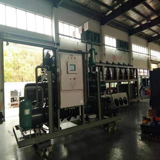 2、以鹽水為載冷劑的反應釜控溫用低溫螺桿式防爆冷水機;