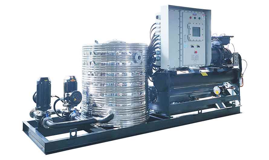 4、以乙二醇為載冷劑的低溫撬裝螺桿式冷水機;